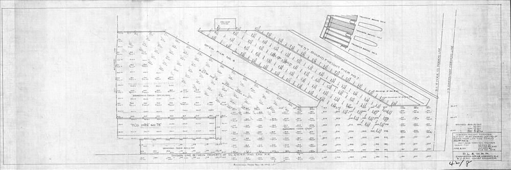 00042.BH--Hoboken Freight Terminal--Plan showing depths of water from low tide to mud--Hoboken, NJ