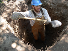 Shows typical privy maintenance and hole digging at Isle Royale.