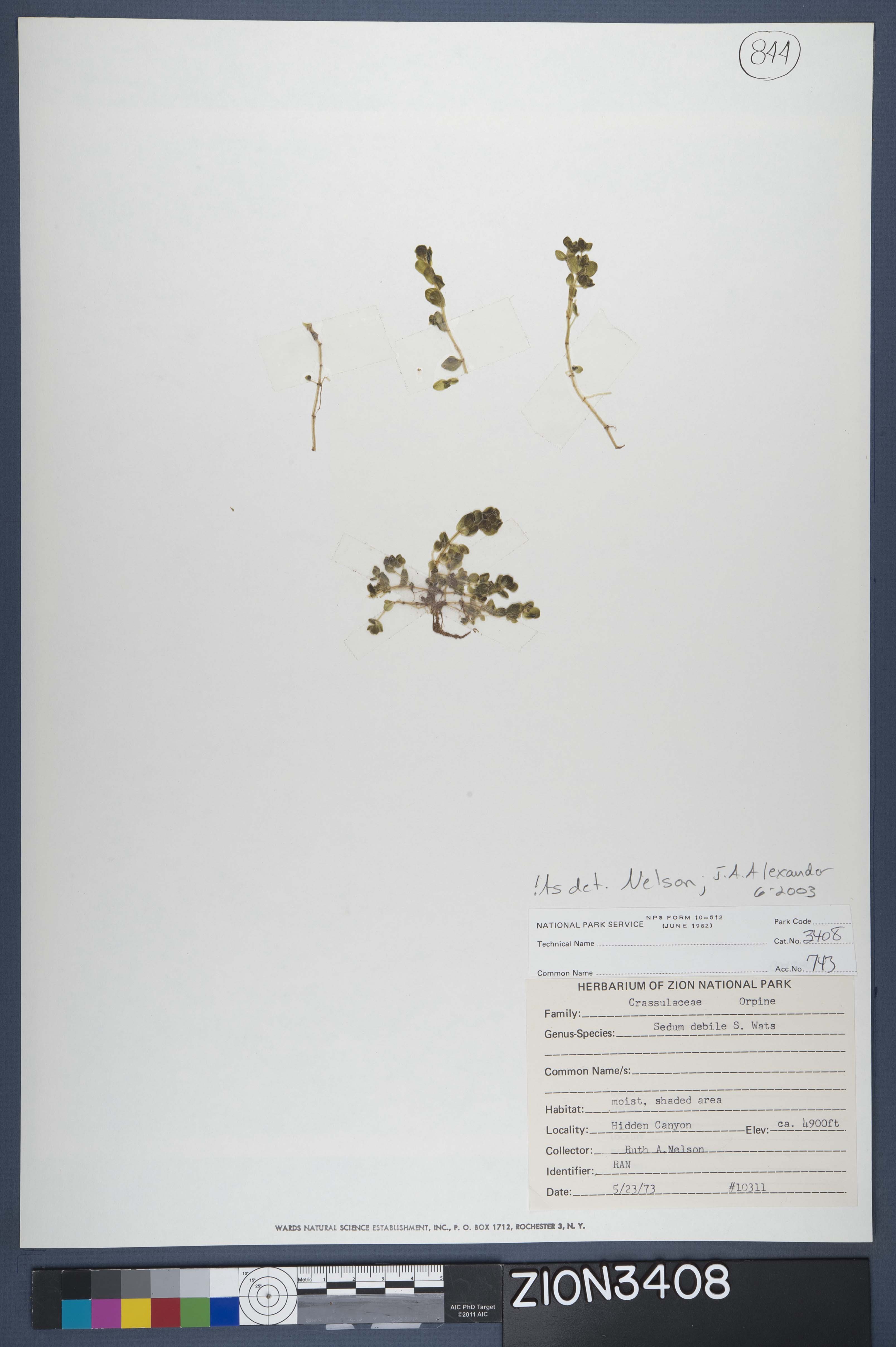 Sedum debile, Weak-stemmed stonecrop. Collected by Ruth A. Nelson, 05-23-1973. Catalogued by Margaret Malm, 1988.
