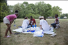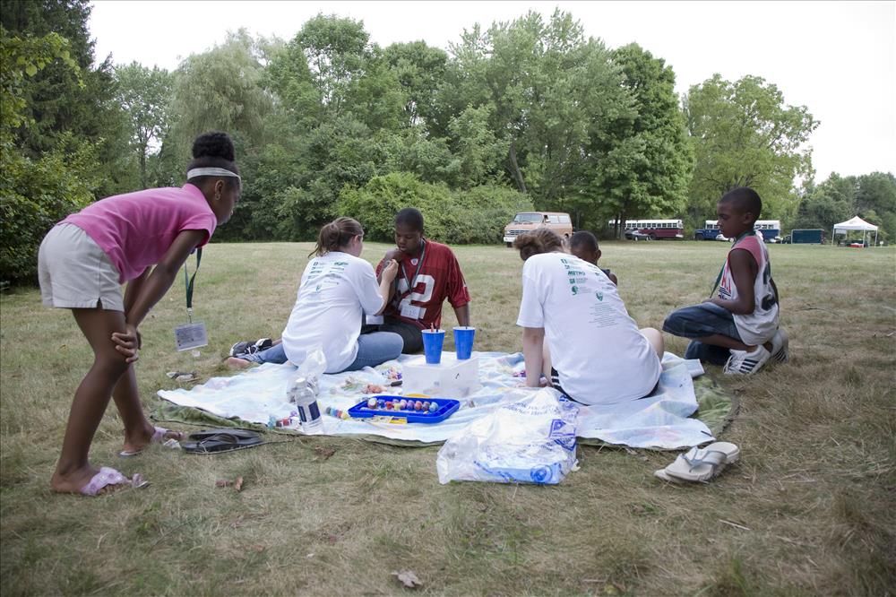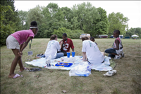 Youth have their faces painted at the Get Up, Get Out & Go! finale in August 2007. || Cuyahoga Valley National Park (CVNP) and Cuyahoga Valley National Park Association present Get Up, Get Out & Go!, an urban outreach program introducing kids ages 11 to 14 and their families to recreational opportunities along the Ohio & Erie Canal Towpath Trail in the greater Akron (Ohio) area. This free summer series targets residents in the urban neighborhoods surrounding the Towpath Trail in Akron but is open to all participants.