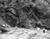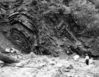 Geologic fold up Taylor Creek near trail to Lee's Pass. Larry Quist at left. ; ZION Museum and Archives Image ZION 8956 ; ZION 7193