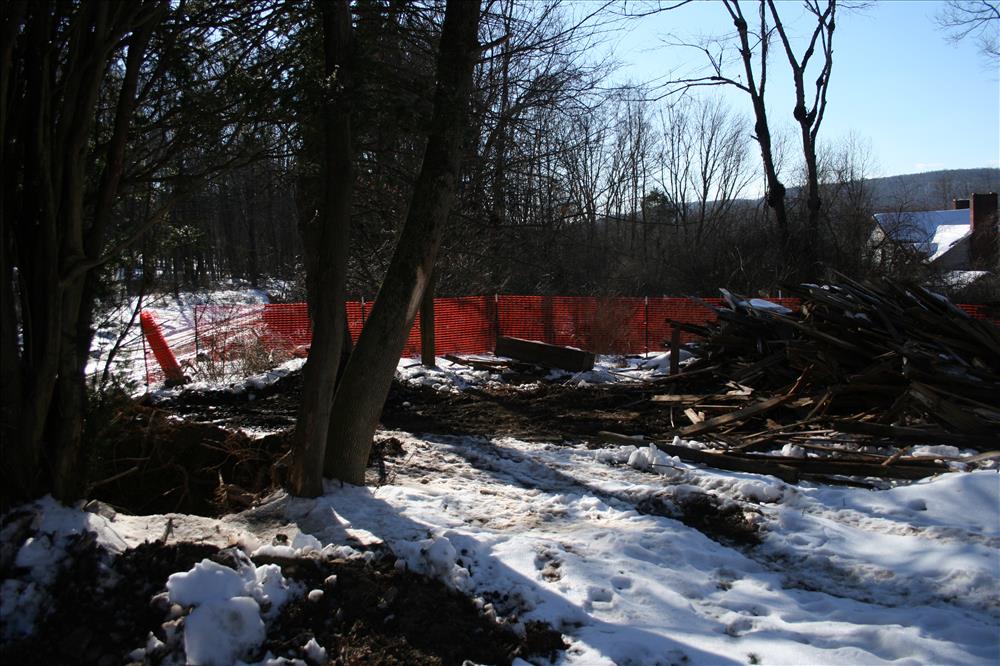 Photo shows Hamilton-Minard house and outbuildings during demolition during the winter of 2012-2013.