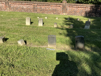 Extra image of historic upright marble headstone with recessed shield face.