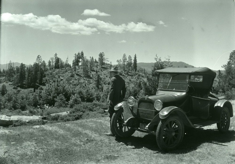 Copy Neg: Leroy Radanovich, November 2001. Yosemite Lumber Co. Looking north across 11 mile meadow - Wawona Road screen (seen?) in distance. Museum Collections Cat. No. YOSE 81675.