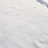 Mouse tracks and bird wing imprints in snow;