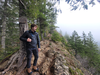 Hiker looking at views from the end of the maintained trail at Mount Storm King.