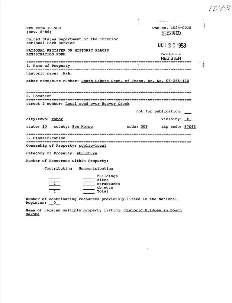 South Dakota Dept. of Transportation Bridge No. 05-255-130