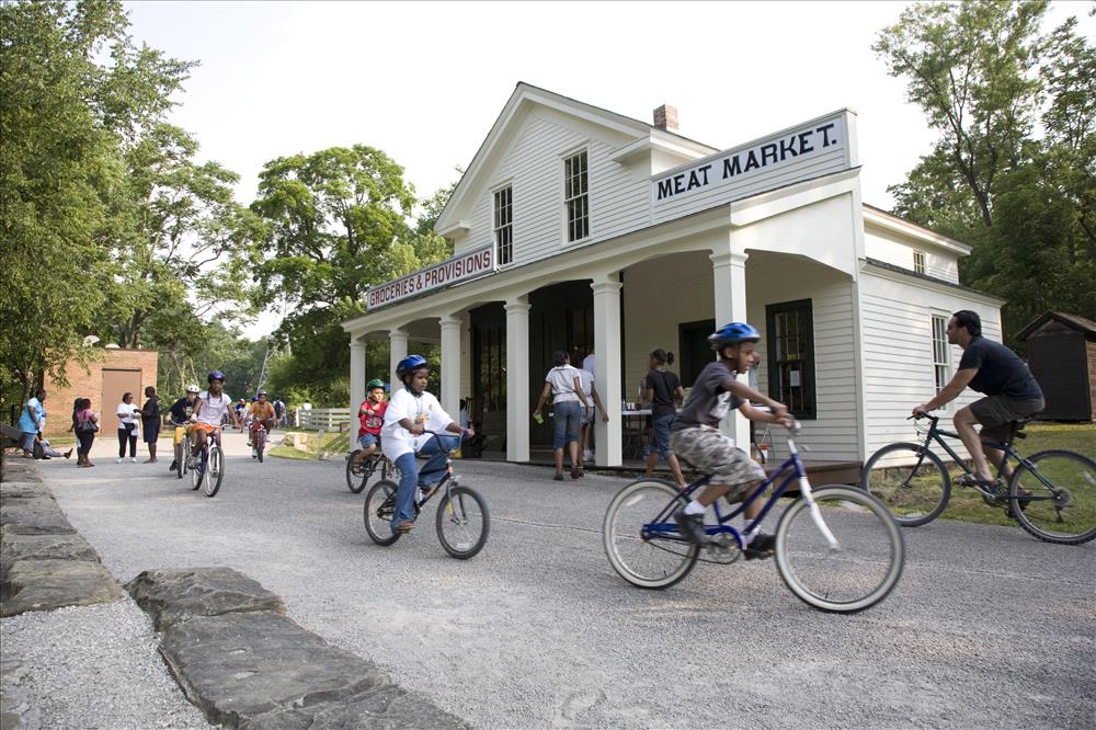 Cuyahoga Valley National Park (CVNP) and Cuyahoga Valley National Park Association present Get Up, Get Out & Go!, a campaign introducing recreational opportunities along the Ohio & Erie Canal Towpath Trail in Akron and the national park. The program targets residents in the urban neighborhoods surrounding the Towpath Trail in Akron which is a part of the larger Ohio & Erie Canalway, a national heritage area. Get Up, Get Out & Go! serves as an invitation for kids 11 to 14 years old and their families to give the Towpath Trail a try and to venture further along the trail into CVNP. || Youth bicycle on the Towpath Trail during the Get Up, Get Out, Go! kickoff event in June 2007. The group is lead by Metroparks Serving Summit County staff.