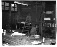 BW photo of rock slide in the maintenance yard - 110 MM. ; ZION Museum and Archives Image 107_06_02005 ; ZION 15933