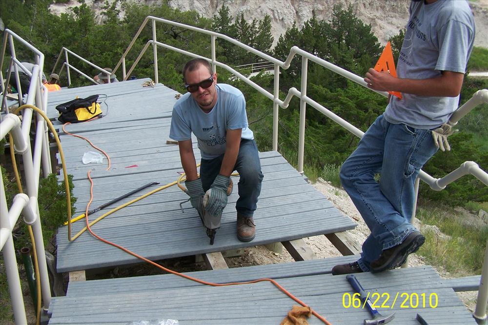 ARRA Funded Trail Crew, rehabilitation of Cliff Shelf Trail during the Spring and Summer of 2010. Crews removed arsenic treated wooden boards and replaced them with recycled plastic lumber boards.
