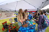 Volunteers with the Hawaiʻi Island Hawksbill Project engage with the public at an exhibit table at the 40th Cultural Festival in Hawaiʻi Volcanoes National Park in Kahuku