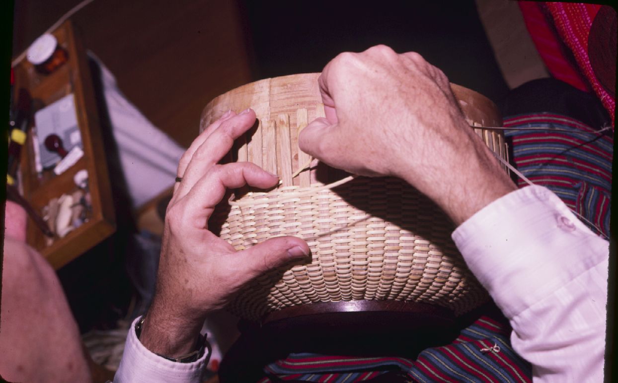 Man demonstrating basket making. ; January 1986