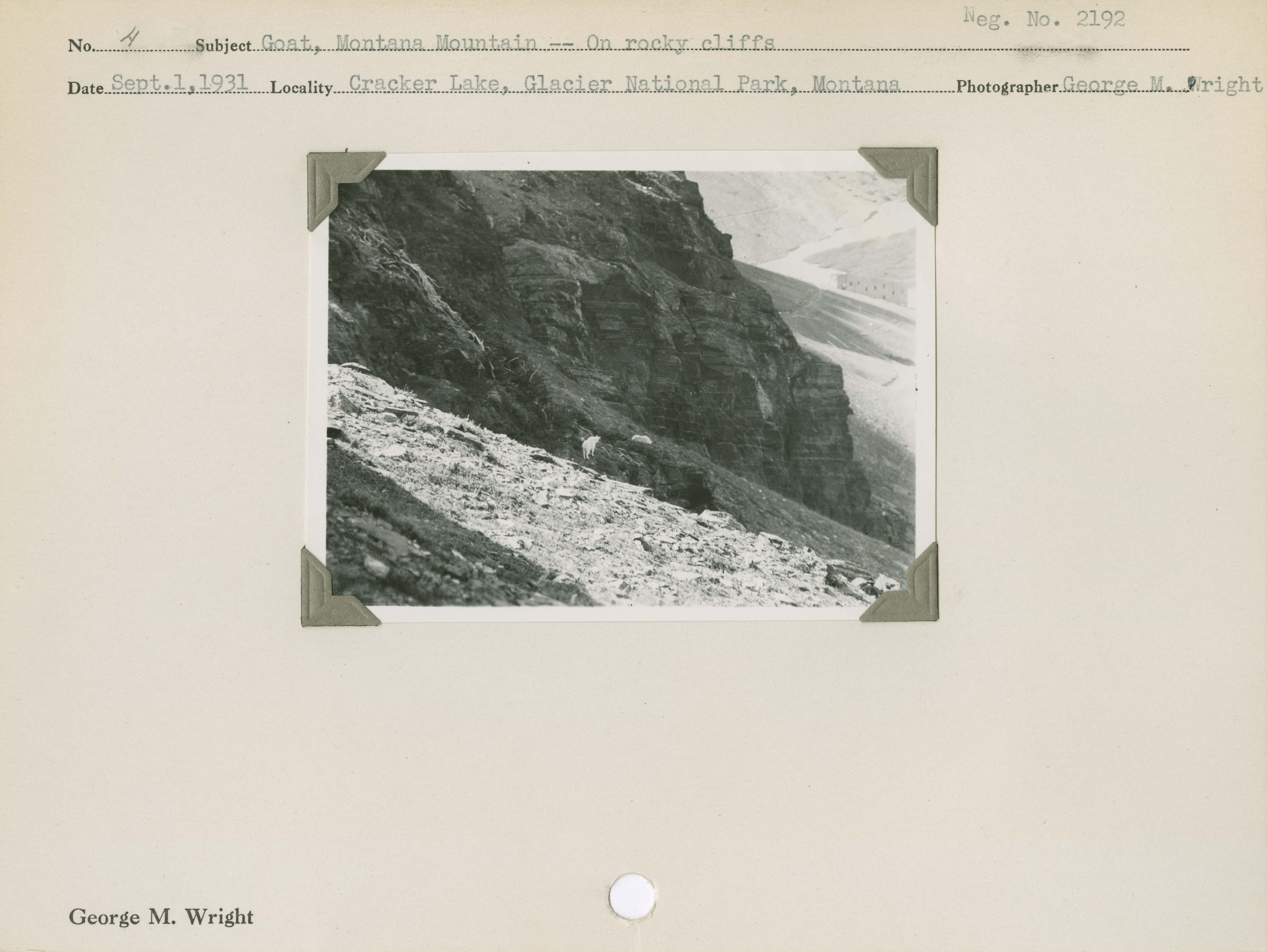 Goat, Montana Mountain – On rocky cliffs. Negative #: 2192. Locality: Cracker Lake, Glacier National Park, Montana.
