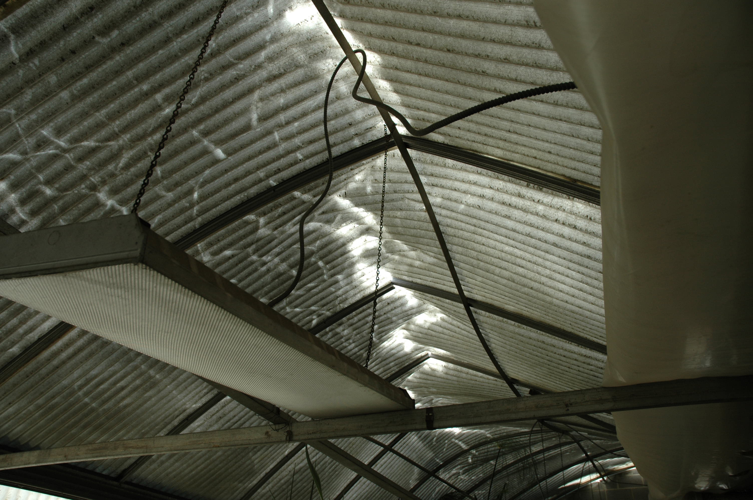 internal views of collapsed greenhouse roof -