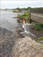-Active overwash across road and down lighthouse driveway