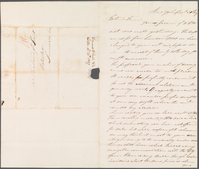 On front of document on right: “New York Decb 30th 1829 Esteemed Friend Your favor of the 26th inst was rec’d yesterday. The draft on us for five hundred dollars we have charged to your acct and passed the same to credit Quinby & Kendig pr receipt annexed. The proposal you make of drawing on us we excede too with pleasure It will be perfectly convenient for us to advance whatever amt you may want. If equally convenient to you we would prefer drafts at one [day?] sight where the amt exceeds say 250 Dolls. Since writing you we have recd 35 Bbls Flour making in all 127 Bbls now on hand which since storing we have not offered for sale but will dispose of it whenever we may think it most to your advantage. owing to the unusually mild weather we still have which leaves every navigable communication with the City open – Flour is very dull – though western maintains about the same price as when yours" On back of document on right: "yours was stored. Inclosed is Whittlesey receipt for the amt of money paid him for Saml Birdsall which you will oblige us by handing to him With esteem Your Friend Edward G. Faile & Co” On front of document on left: "Edward G. Faile & Co. Letter 12mo 31st 1829" "Mr Richard P Hunt Waterloo Seneca Co"