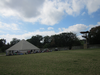Guests gather at the historically accurate recreation of a traditional Chickasaw village at the Chickasaw Cultural Center during the 2012 Trail of Tears Conference in Sulphur, Oklahoma near the Chickasaw National Recreation Area
