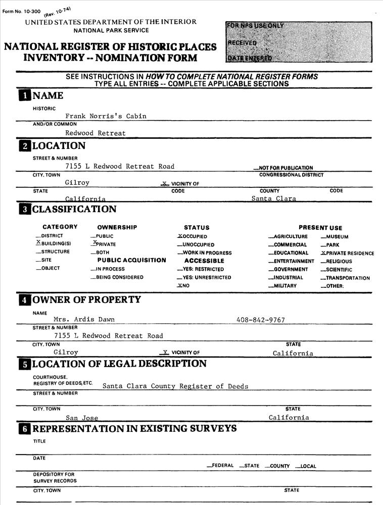 Norris, Frank, Cabin