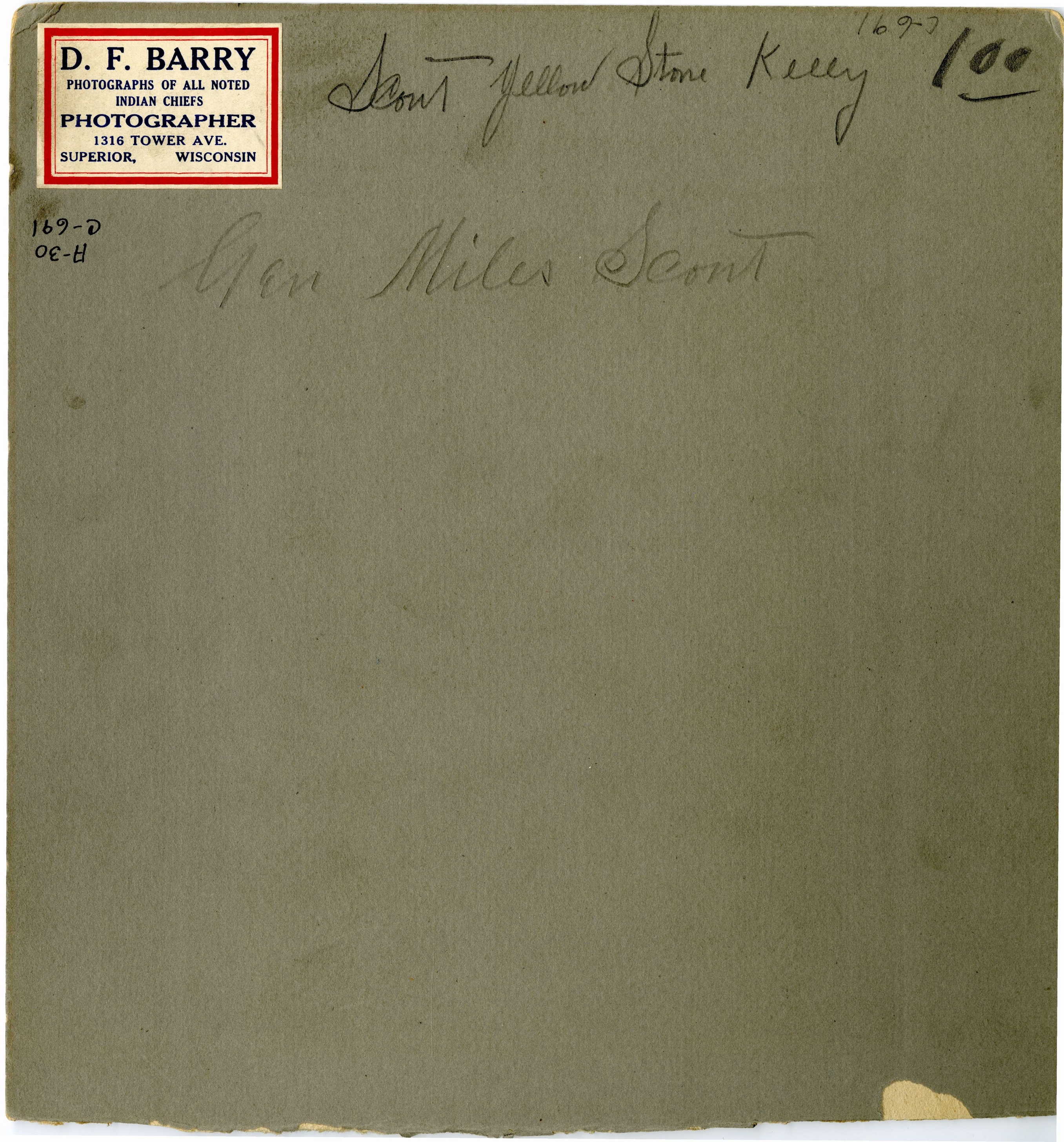 LIBI_00030_00691; A photograph, mounted on card, depicting Luther Kelley, Yellowstone scout, seated with white gauntleted glove on right hand; produced by D. F. Barry, on unknown date. Bottom of mount is torn.; print, photographic [mounted on card]; Courtesy of the National Park Service, Little Bighorn Battlefield National Monument, LIBI_00030_00691, D. F. Barry, "Yellowstone (Luther) Kelley in Large Hat and Gauntleted Glove," date unknown