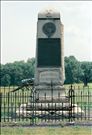 15'h thick granite obelisk w/ rough faces & smooth meeting edges; bronze plaque & disc bearing State seal; on 3-tier base, surrounded by gravel & iron fence; commemorating 14th Brooklyn Infantry at 2nd Manassas; on hill opposite Groveton Cemetery || Structure Number: 14M012