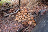 A pile of pine cones lie on the ground