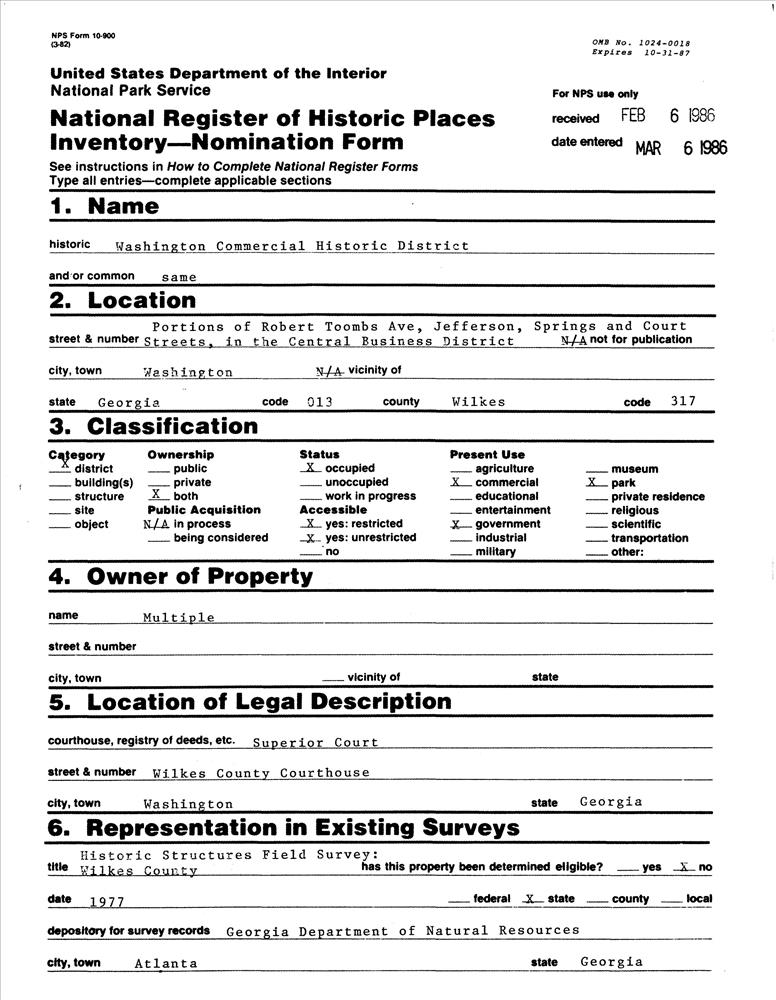 Washington ; Roughly bounded by Court St., Jefferson St., Robert Toombs Ave., and Allison St.