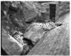 BW photo of rock slide in the maintenance yard. ; ZION Museum and Archives Image 107_06_03003 ; ZION 15933