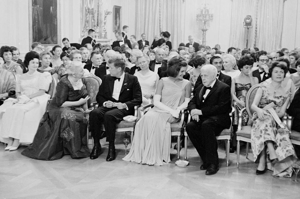 President Kennedy said that the event was "probably the greatest concentration of talent and genius in this house, except for those times when Thomas Jefferson dined alone." Photo courtesy of the JFK Library, KN-21214.