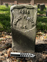 Extra image of historic upright marble headstone with recessed shield face.