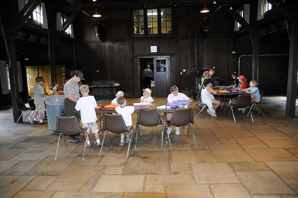Children enjoy free play at the Junior Ranger Day Camp in Cuyahoga Valley National Park. || Park rangers and Cuyahoga Valley National Park Association (CVNPA) staff lead a week-long Junior Ranger Day Camp based at Happy Days Lodge. The camp serves children ages 6 - 11.