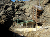Anacapa Island Landing Cove, dock, staircase in February 2009. Landing cove shows dock orientation, dock building, metal staircase, and cliff.
