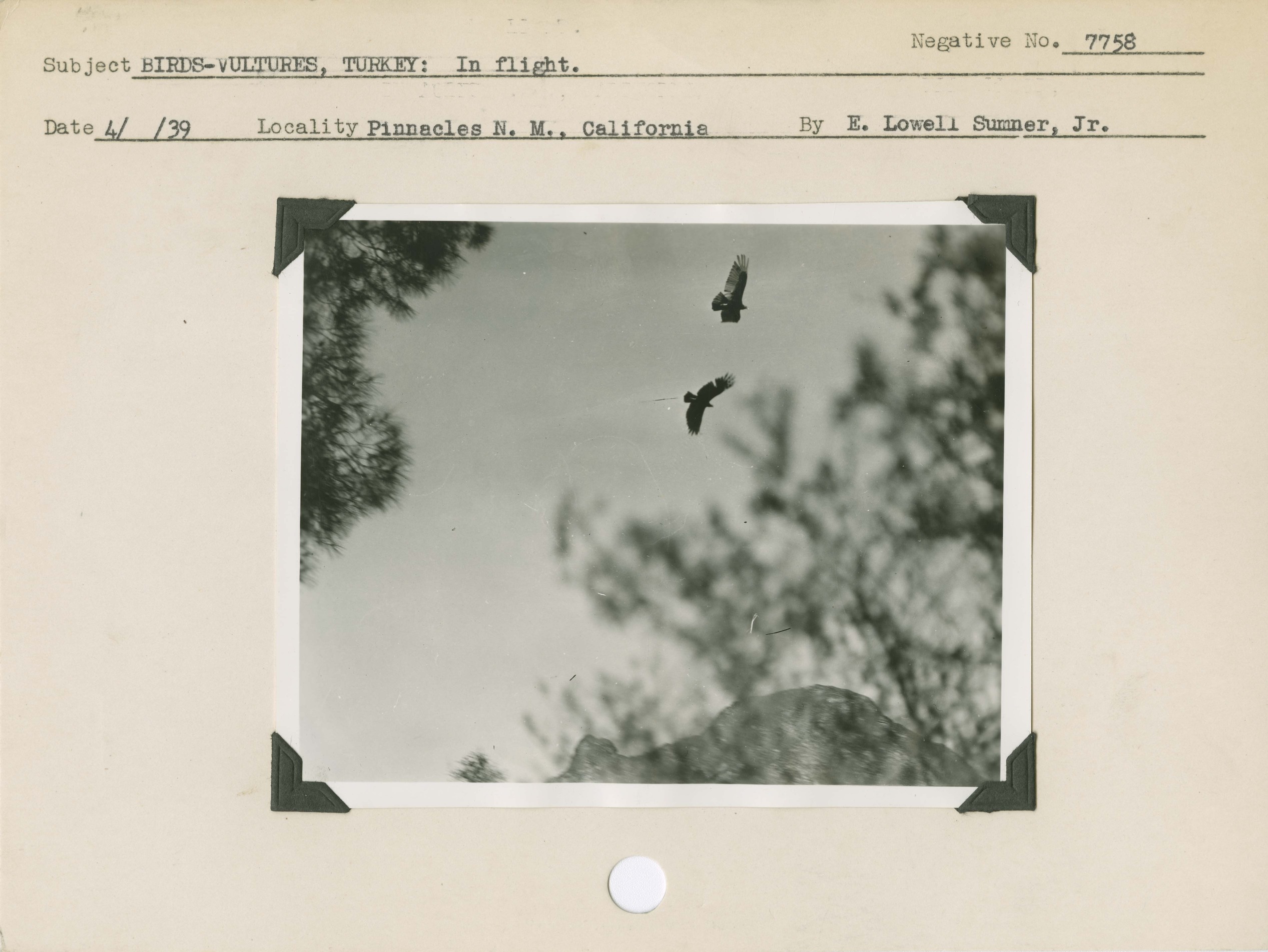 Birds- Vultures, Turkey: In flight. Locality: Pinnacles National Monument, California. Negative #: 7758