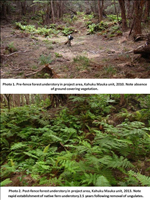Map and photos of invasive faya tree in Hawaii Volcanoes NP