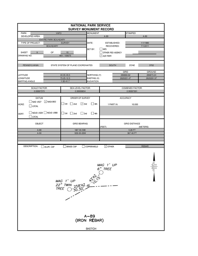 VAFO A-89 NPS Survey Monument Record Sheet pdf