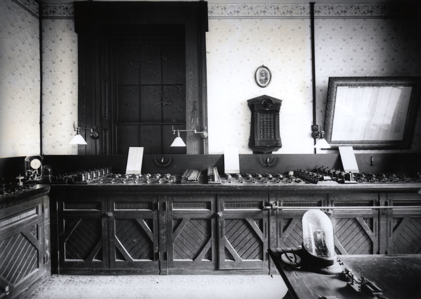 Interior view of the Fire Alarm Office on the second floor of the Old Courthouse on October 18, 1893. ; 10/18/1893