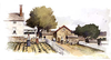 Work panorama: slaves laboring in the fields. The overseer's house on the left is close to the stone slave quarters depicted on the right. Hampton Estate's slave quarters still stand today.