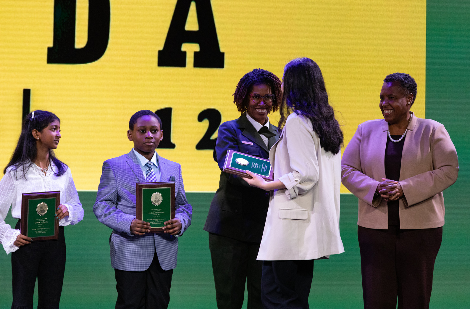 Oratorical contest performers recieve their awards at the 2023 Frederick Douglass Birthday Celebration