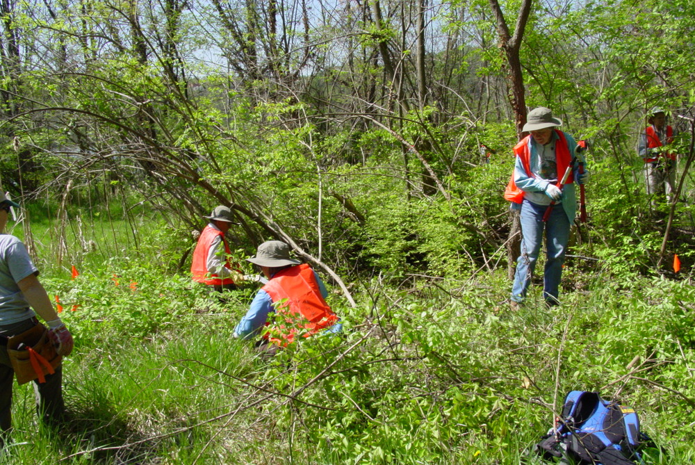 Volunteers cleaning the Sloan's Crossing Pond, MACA