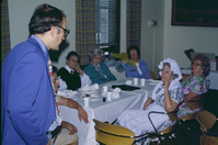 Park staff member speaking to guests at an unidentified JEFF special event. ; September, 1977