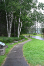 There is a paved walkway on the left side of the parking lot that leads to the crosswalk to access the memorial site.