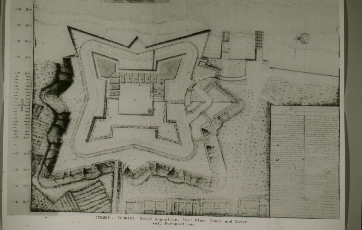 Item 62; St. Augustine Fort plan, inner and outer wall perspectives.