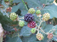 Blackberries of varying ripeness on vine in 2009
