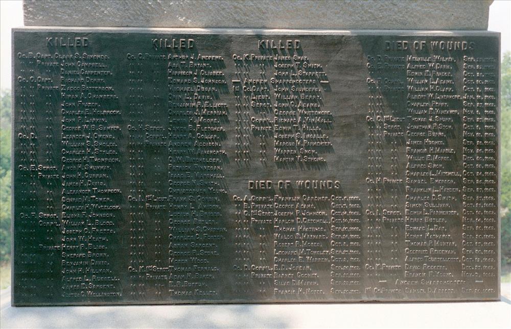 30 || 15' h granite monument; 2-stepped base, with 10' wide slab above supporting reclining male lion. Bronze plaque on front of slab, regiment name & clover leaf, the 2nd Corps badge, in relief on rough-dressed base. Located on E side Hagerstown Bypass. || Built in 1900; designed by A. O.Connor