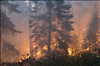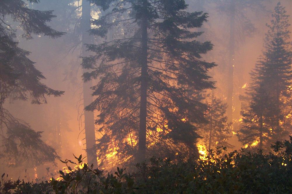Sunset prescribed burn in Grant Grove, Sequoia and Kings Canyon National Parks, fall 2002