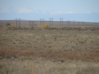 Powerline cuts across an open shortgrass prairie, snowcapped mountains loom in the far distance.