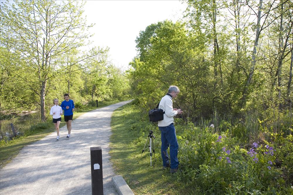 A visitor takes nature photographs at the Beaver Marsh, a site along the Towpath Trail. || Nature photography is a popular activity in Cuyahoga Valley National Park. Cuyahoga Valley Photographic Society promotes CVNP through the photographic arts by providing educational opportunities such as workshops, presentations, photo walks, and an annual photo contest. For more information contact info@cvps.org.