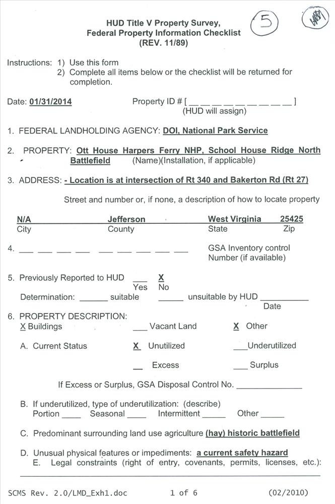 Ott House Documents for Demolition Harpers Ferry National Historical Park March 2014