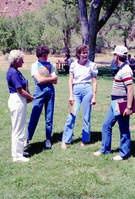 Color Photos of the parks 72nd anniversary celebrations- cake cutting, barbecue, speakers. Superintendent Harold Grafe serving cake. ; ZION Museum and Archives Image 800_21_01022 ; ZION 15933