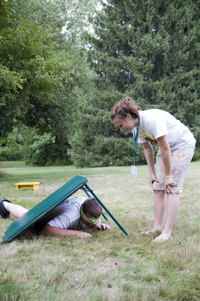 Youth navigate a blindfolded obstacle course at the Get Up, Get Out & Go! finale in August 2007. || Cuyahoga Valley National Park (CVNP) and Cuyahoga Valley National Park Association present Get Up, Get Out & Go!, an urban outreach program introducing kids ages 11 to 14 and their families to recreational opportunities along the Ohio & Erie Canal Towpath Trail in the greater Akron (Ohio) area. This free summer series targets residents in the urban neighborhoods surrounding the Towpath Trail in Akron but is open to all participants.