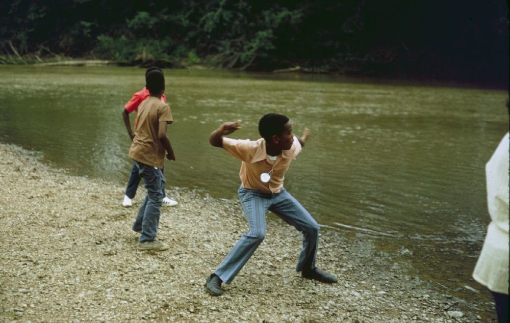 Tossing rocks into the Meramec River. ; August 1971
